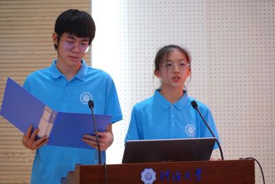 2024级本科生陆斐然、石凯然作为新生代表发言,他们表达了对大学生活的憧憬与期待,并承诺将牢记使命,不负韶华,刻苦奋斗,以实际行动践行青春誓言,以梦为帆,以识为舟,奋楫笃行,履践致远,续写新一代数学人的骄傲。