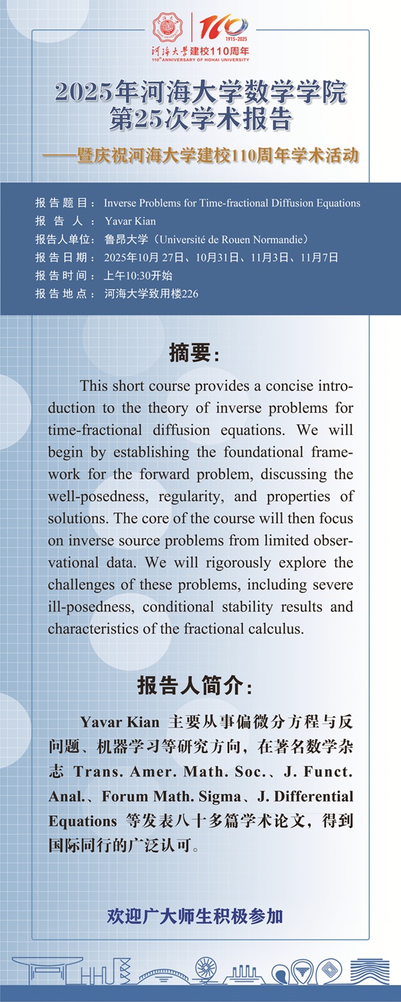 无料AV 第25次学术报告:Inverse Problems for Time-fractional Diffusion Equations